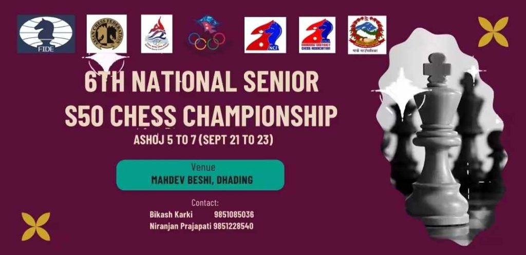धादिङ–धादिङको महादेववेसीमा राष्ट्रिय भेटेरान चेस प्रतियोगिता हुने भएको छ । नेपाल बुद्धिचाल महासंघ र धादिङ जिल्ला बुद्धिचाल संघको आयोजना तथा थांक्रे गाउँपालिकाको सहयोगमा असोज ५ देखि ७ गतेसम्म राष्ट्रिय प्रतियोगिताको आयोजना हुन लागेको हो । ५० वर्ष उमेर माथिका खेलाडीहरु प्रतिस्पर्धामा रहनेछन् । थांक्रे गाउँपालिका वडा नम्बर ६ महादेवबेशीमा असोज ५ अर्थात भोलिेदेखि हुने प्रतियोगिताको […]