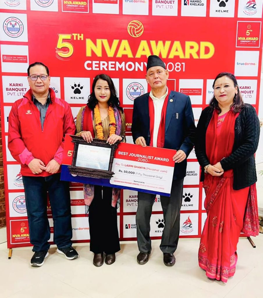 पाँचौं एनभीए अवार्डमा धादिङकी लक्ष्मी शाक्यलाई ‘वर्षको उत्कृष्ट खेलकुद पत्रकार’ सम्मान