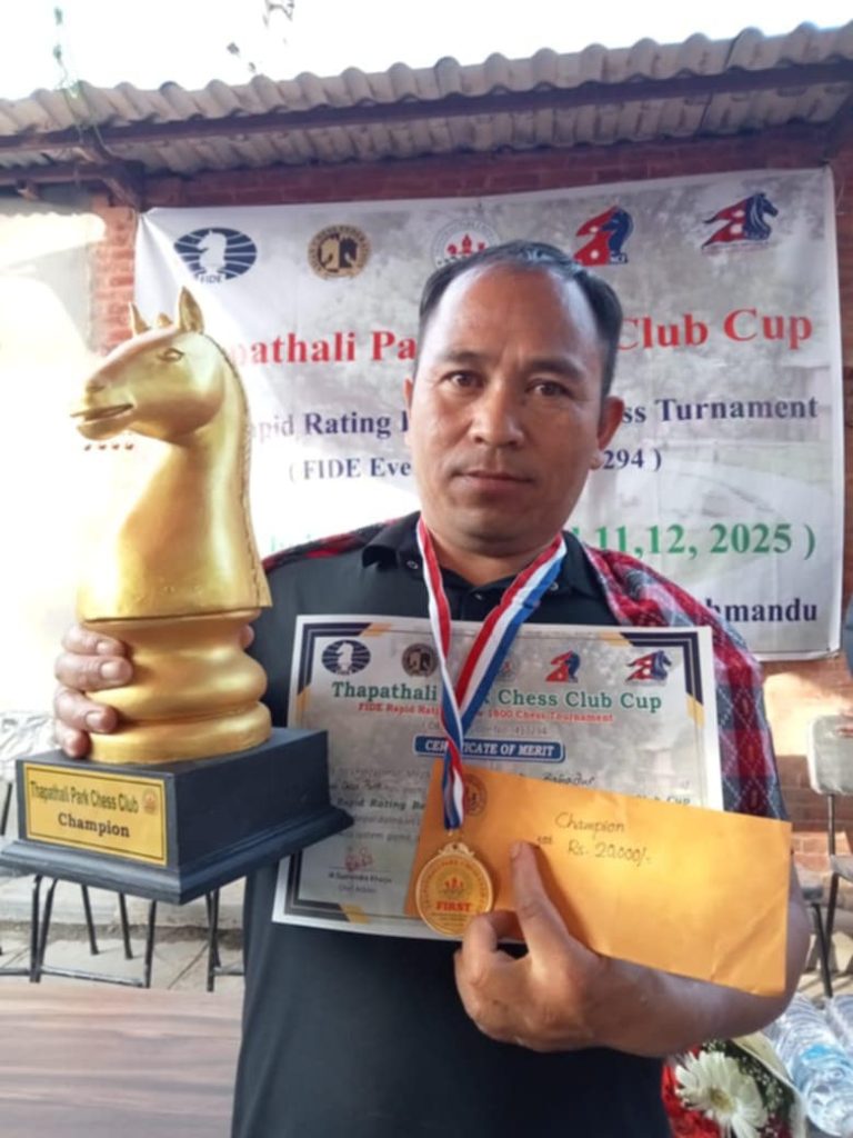थापाथली पार्क चेस क्लबद्वारा दुईदिने राष्ट्रव्यापी र्यापिड बुद्धिचाल प्रतियोगिता सम्पन्न, लोकबहादुर गोले च्याम्पियन