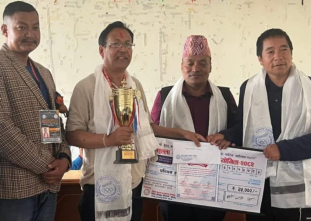 ३१ बैशाख, खोटाङ । नेपाल खेलकुद प्रतिष्ठान, दिक्तेलद्वारा आयोजित दुई दिने खुल्ला राष्ट्रिय र्यापिड बुद्धिचाल प्रतियोगितामा ललितपुरका वरिष्ठ खेलाडी बद्रीलाल नेपाली प्रथम भएका छन्। तीन पटकका पूर्व नेपाल च्याम्पियन रहेका बद्रीलालले ७ चरणको खेलमा ६ जीत र १ बराबरी खेल्दै ६.५ अंकसहित उपाधि हात पार्न सफल भए। उनले नगद रु. २५,००० पुरस्कार प्राप्त गरे। प्रतियोगितामा […]