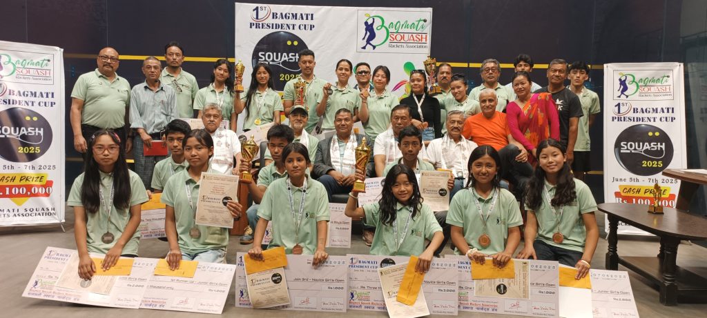 २४ जेष्ठ, ललितपुर । नेपाल स्क्वाश एकेडेमी, सतदोबाटोमा सम्पन्न प्रथम बागमती प्रेसिडेण्ट स्क्वास कप २०८२ को उपाधि पुरुष तर्फ अर्हन्त केशर सिम्ह र महिला तर्फ बिपना भ्लोनले जितेका छन्। शनिवार सम्पन्न पुरुष स्क्वास फाइनल खेलमा शीर्ष खेलाडी अर्हन्तले पाँचौं वरियताका प्रतिद्वन्द्वी पासाङ्ग भ्लोनलाई ११-८, ११-९ र ११- ९ को स्कोरले पराजित गर्न सफल भएका […]