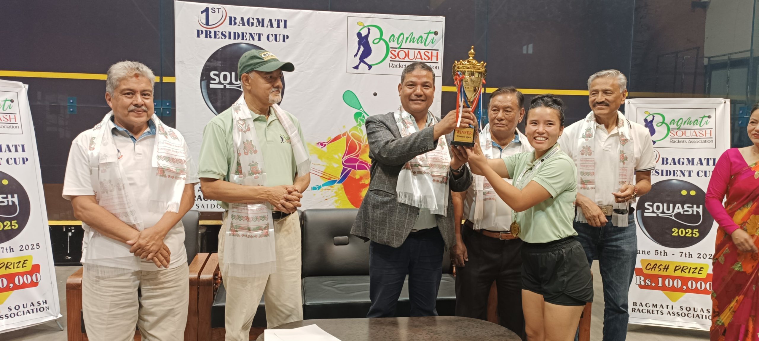 २४ जेष्ठ, ललितपुर । नेपाल स्क्वाश एकेडेमी, सतदोबाटोमा सम्पन्न प्रथम बागमती प्रेसिडेण्ट स्क्वास कप २०८२ को उपाधि पुरुष तर्फ अर्हन्त केशर सिम्ह र महिला तर्फ बिपना भ्लोनले जितेका छन्।